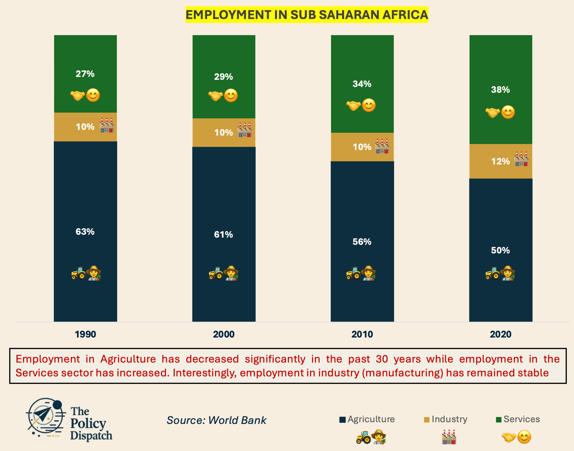 Beyond all of that though, there is another story : the structure of African economies are changing and that is having an impact on family structure and size. Whereas a few decades, informal employment was the norm, now formal employment is much more common. So too is the number of women working. While the agricultural and resource sectors remain a big part of many African economies, the services sector has been slowly employing more Africans.
